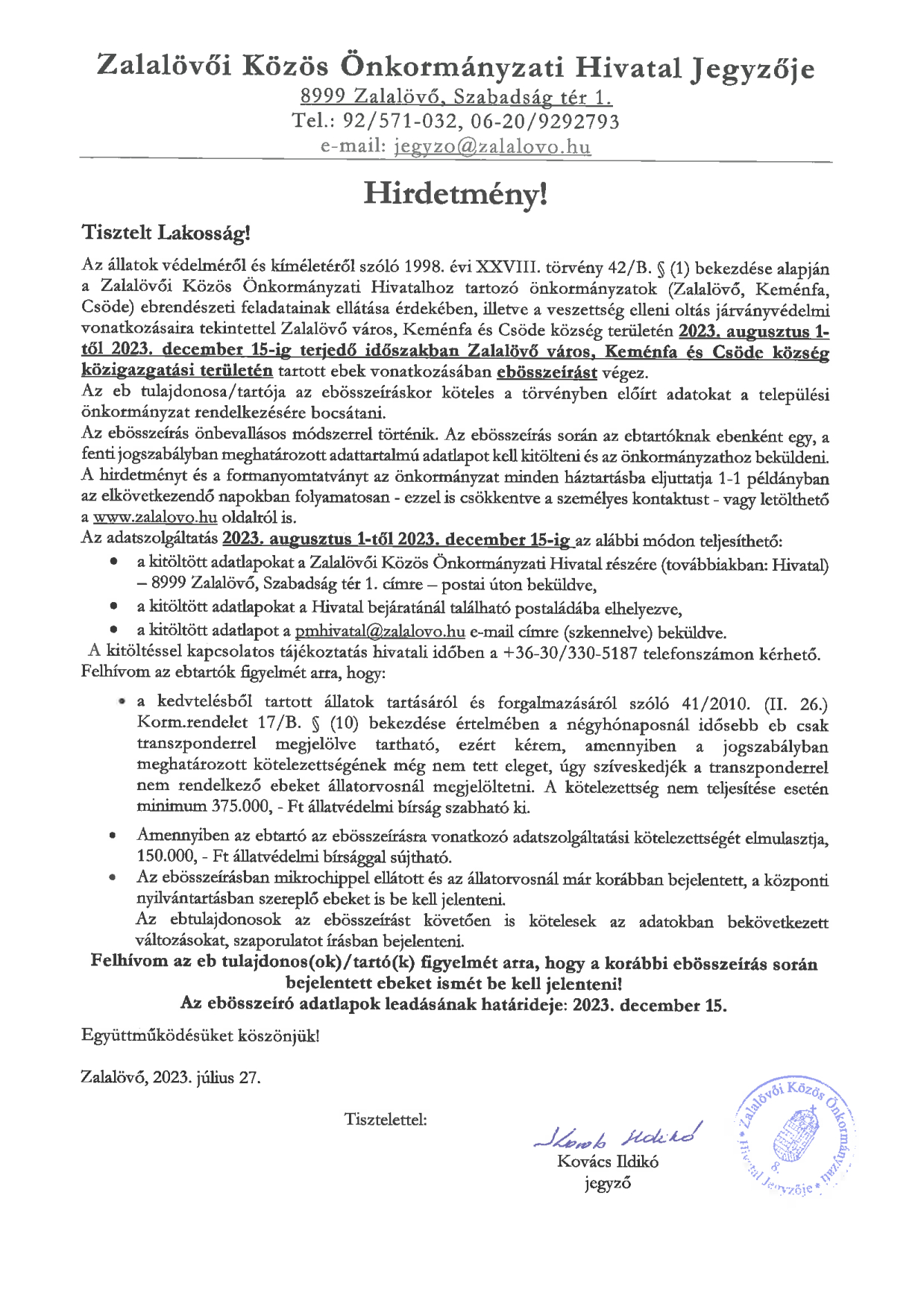 Ebösszeírás 2023 Hirdetmény